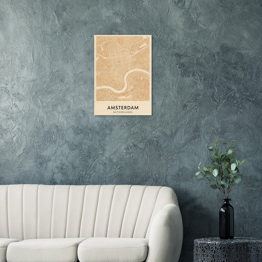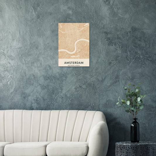 Minimalist Amsterdam Map Print - Aluminum Print – Scandinavian Wall Art, Fine Art City Map Poster, 50x70cm/20x28
