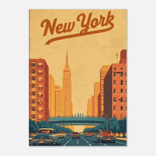 New York Retro Skyline Poster A2 – Fine Art Print 1960er Nostalgie Wandbild – Vintage Urban Wall Art 50x70cm/20x28 - Leinwand