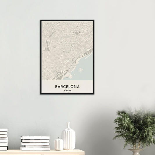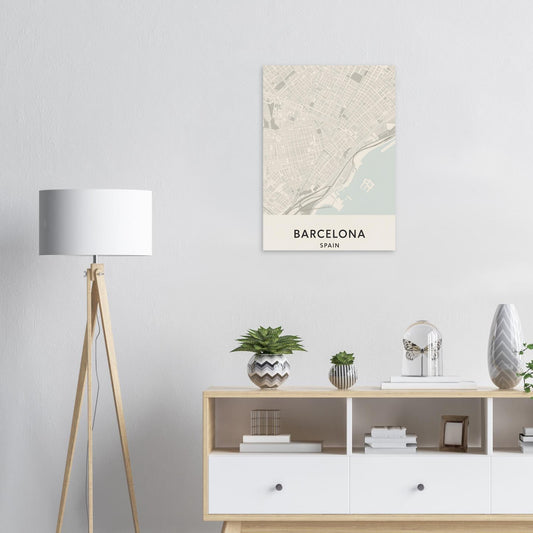Minimalist Barcelona aus mattem Papier – Scandinavian Wall Art, Fine Art City Map Poster, Modern Travel Decor Gift, 50x70cm/20x28