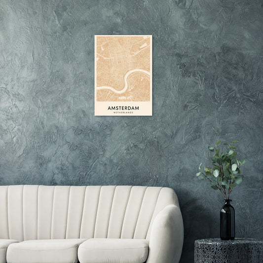 Minimalist Amsterdam Map Print - Leinwand – Scandinavian Wall Art, Fine Art City Map Poster, 50x70cm/20x28