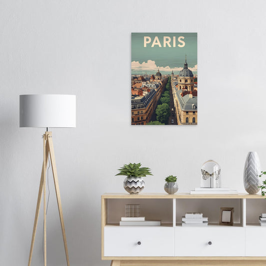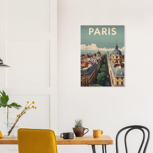 Paris Vintage Travel Poster gebürsteter Aluminiumdruck – Fine Art Print 1950er Nostalgie Wandbild – Retro Stadt Skyline Art, 50x70 cm/20x28