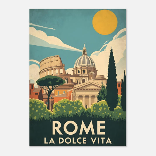 Rome Vintage Travel Poster Aluminum Print – Fine Art Print im Retro-Stil der 1950er – Nostalgisches Italien Wandbild, La Dolce Vita Art