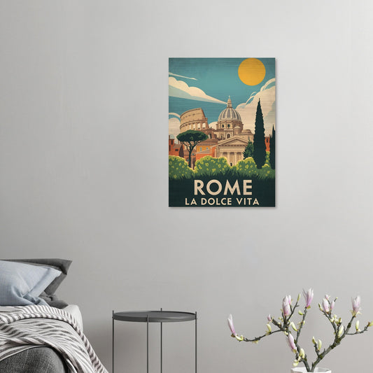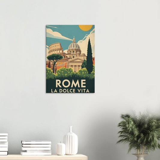 Rome Vintage Travel Poster Aluminum Print – Fine Art Print in Retro 1950s Style – Nostalgic Italy Wall Art, La Dolce Vita Art