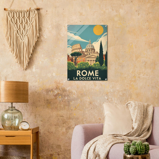 Rome Vintage Travel Poster Acrylic Print – Fine Art Print in Retro 1950s Style – Nostalgic Italy Wall Art, La Dolce Vita Art