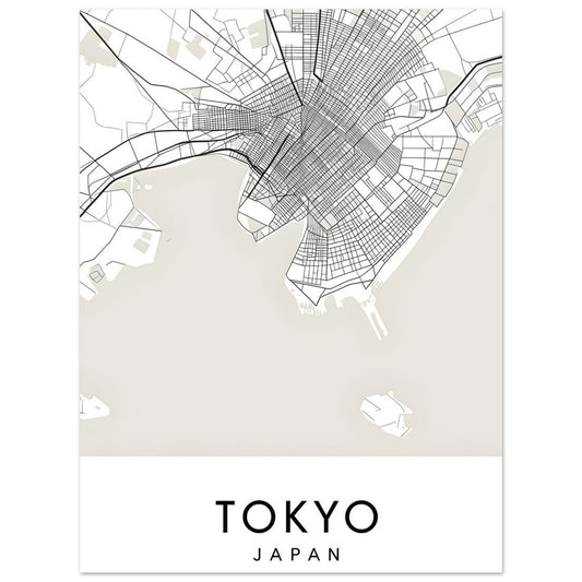 Minimalistischer Tokyo Map Print - Aluminiumdruck – Scandinavian Wall Art, Fine Art City Map Poster, 50x70cm/20x28 -