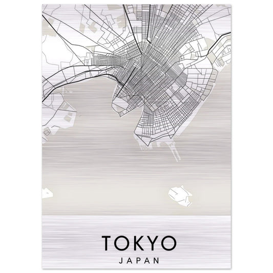Minimalistischer Tokyo Map Print - Gebürsteter Aluminiumdruck – Scandinavian Wall Art, Fine Art City Map Poster, 50x70cm/20x28