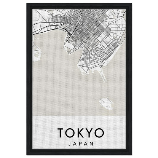 Minimalistischer Tokyo Map Print - gerahmte Leinwand – Scandinavian Wall Art, Fine Art City Map Poster, 50x70cm/20x28