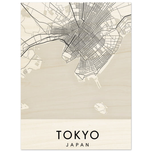 Minimalistischer Tokyo Map Print - Holzdrucke – Scandinavian Wall Art, Fine Art City Map Poster, 50x70cm/20x28